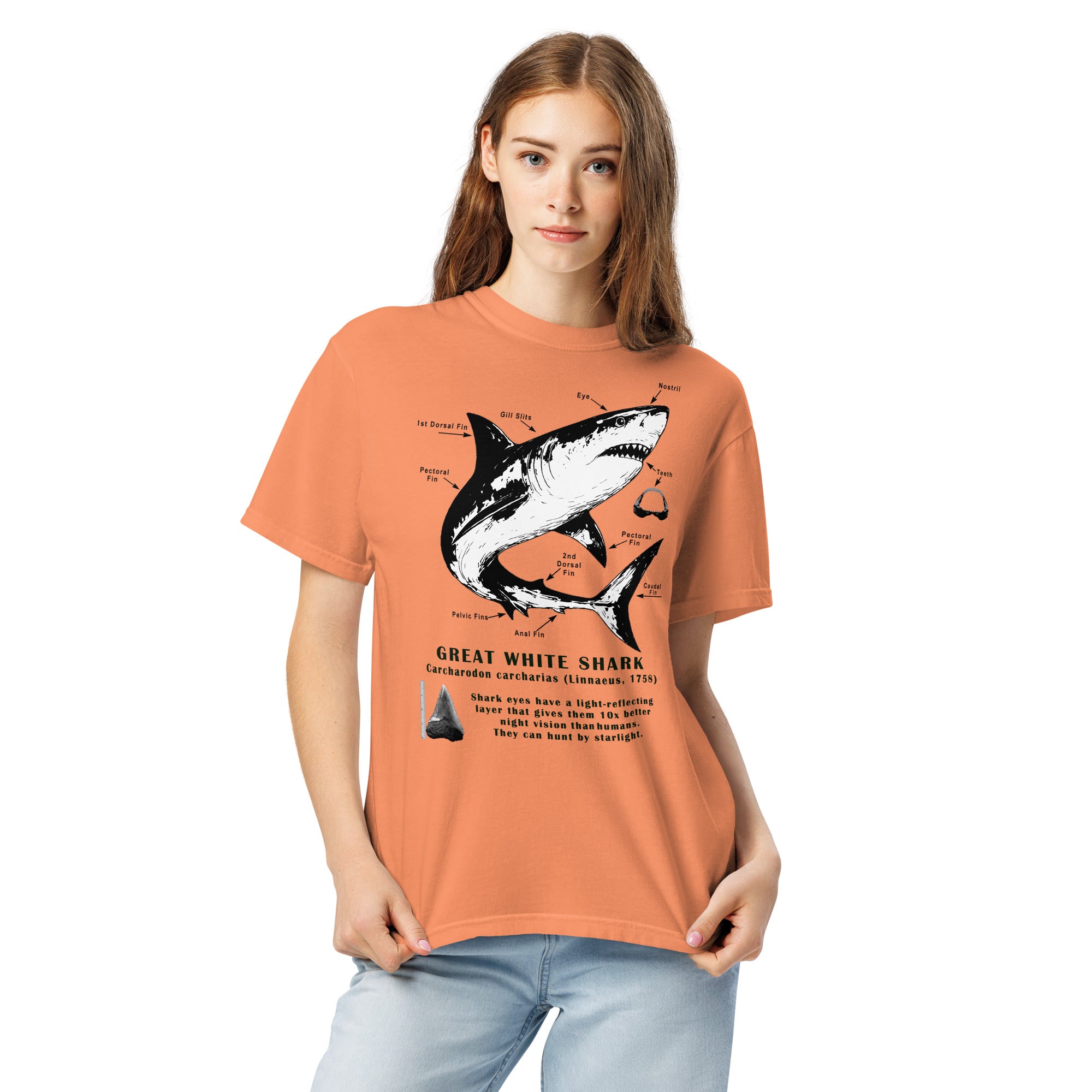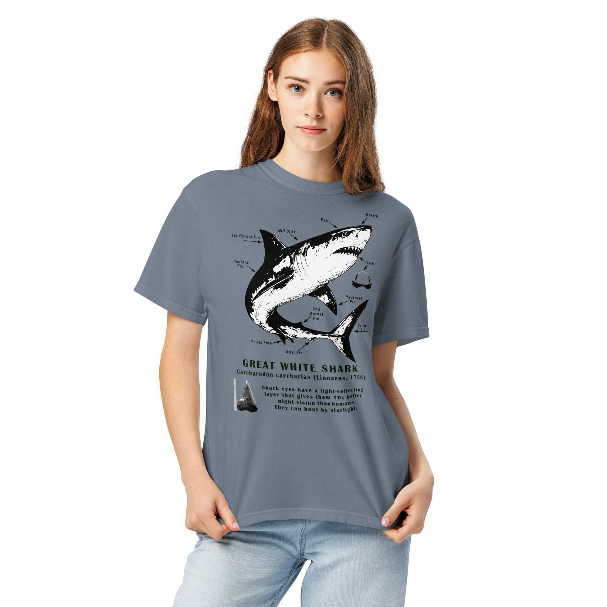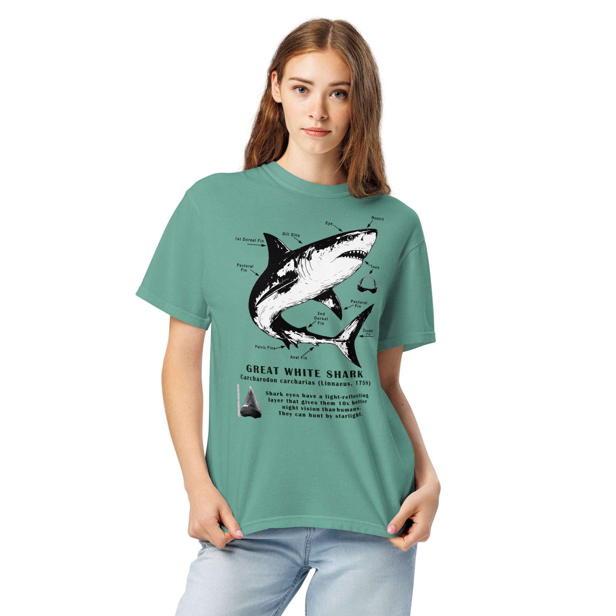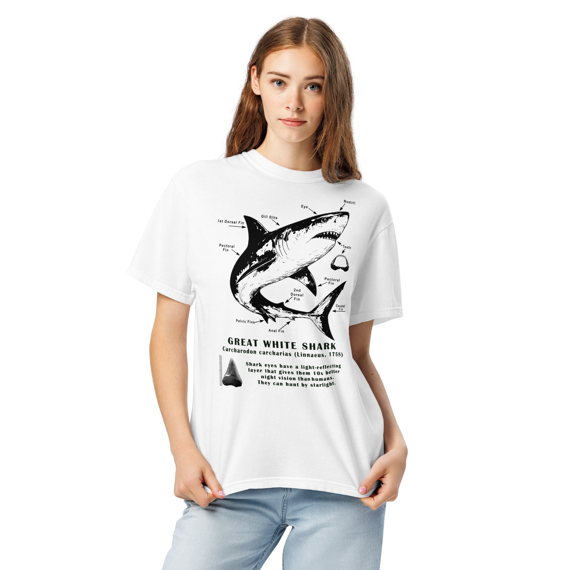 Great White Shark Anatomy Tee – Comfort Colors 1717 T-Shirt with Labeled Illustration